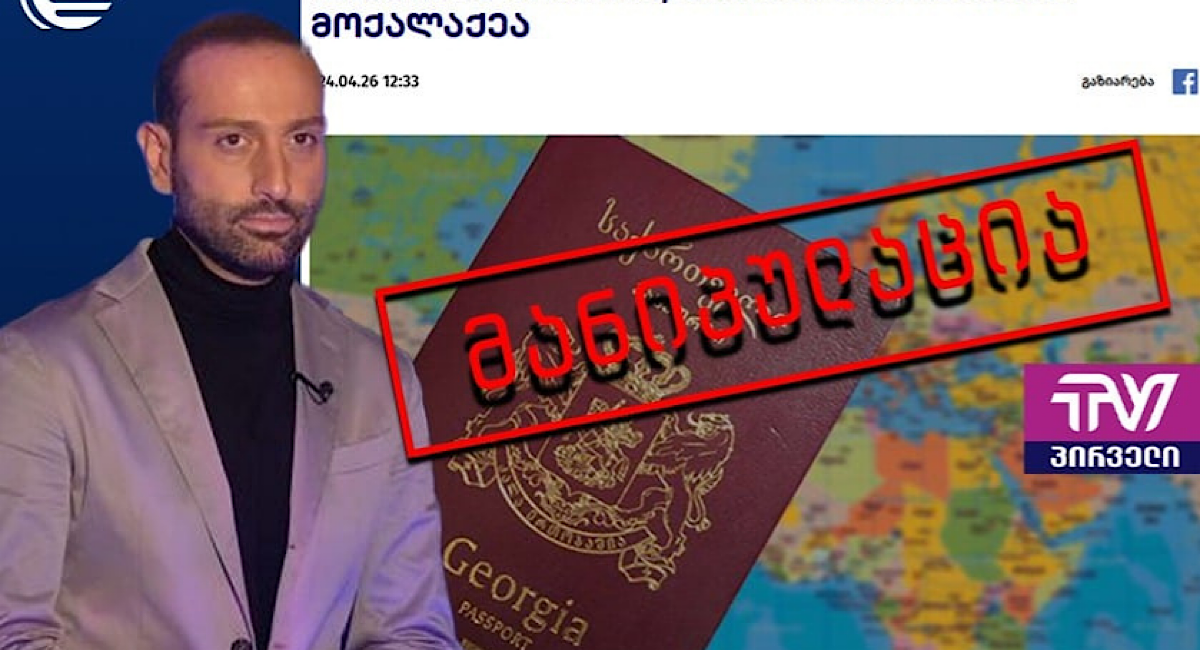 ოპოზიციური მედიის მანიპულაცია: ტელეკომპანია „ტვ პირველი“ BPN-ზე დაყრდნობით ავრცელებს 2025 წელს საქართველოს მოქალაქოების მინიჭებასთან დაკავშირებით ინფორმაციას და წერს, რომ გასულ წელს, საქართველოს მოქალაქეობა 2 333 ადამიანს მიენიჭა, რომელთაგან 60% რუსეთის მოქალაქეა.