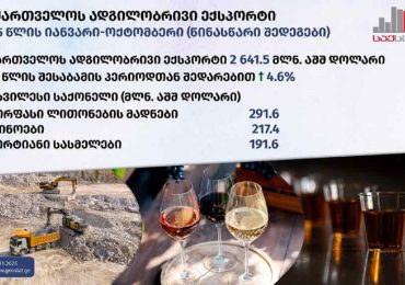 სტატისტიკის ეროვნული სამსახურის მონაცემებით, 2025 წლის იანვარ-ოქტომბერში საქართველოდან განხორციელებული საქონლის ექსპორტის მოცულობამ (არადეკლარირებული ექსპორტის გარეშე) 5 835.9 მლნ. აშშ დოლარი შეადგინა…