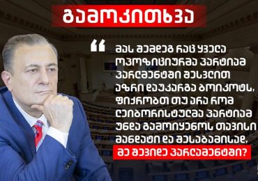 “ვეთანხმები ეროვნული მობილიზაციის დღის გამოცხადებას, რომლის მიზანი იქნება არდაშლა, ვიდრე არ დაინიშნება რიგგარეშე არჩევნები და არ შემეძლება გარეთ გასვლა”