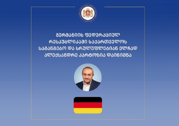 გერმანიის ფედერაციულ რესპუბლიკაში საქართველოს საგანგებო და სრულუფლებიან ელჩად ალექსანდრე კარტოზია დაინიშნა