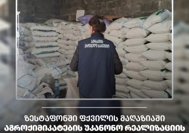 სურსათის ეროვნული სააგენტოს ინსპექტორებმა, იმერეთში, ქალაქ ზესტაფონში, არაგეგმური ინსპექტირების შედეგად, აგროქიმიკატებით უკანონო ვაჭრობის ფაქტი გამოავლინეს. ინდმეწარმე ზ. ქ. (მის: რუსთაველის ქუჩა N97ა…