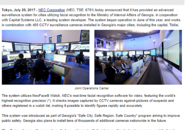 NEC Corporation საქართველოს შსს-ს ერთობლივი ოპერაციების ცენტრის შესახებ წერს