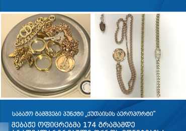 ქუთაისის აეროპორტში დიდი ოდენობით არადეკლარირებული ოქროს ნაკეთობების შემოტანის ფაქტები აღიკვეთა
