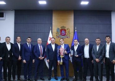 ვახტანგ გომელაური სამინისტროს საფეხბურთო გუნდის წევრებს შეხვდა და დააჯილდოვა