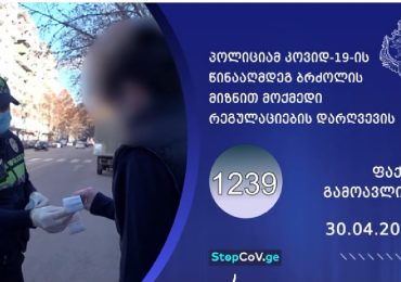 შინაგან საქმეთა სამინისტრომ „კოვიდ-19“-ის წინააღმდეგ ბრძოლის მიზნით მოქმედი რეგულაციების დარღვევის 1 239 ფაქტი გამოავლინა. „შინაგან საქმეთა სამინისტროს შესაბამისი დანაყოფების თანამშრომლები, ქვეყანაში …