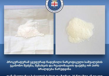 პროკურატურამ ჯგუფურად ჩადენილ ნარკოდანაშაულზე ორ პირს ბრალი წაუყენა