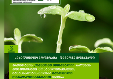 სოფლის განვითარების სააგენტო სახელმწიფო პროგრამაში „დანერგე მომავალი“ მონაწილეობისთვის განაცხადებს მიმდინარე წლის 10 ნოემბრის 12:00 საათიდან 2026 წლის 28 თებერვლამდე მიიღებს. ინფორმაციას გარემოს დაცვი…