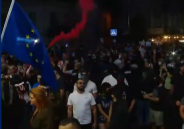 კახა კალაძის საარჩევნო შტაბთან შეკრებილები შენობას კვერცხებს ესვრიან და ბანერი დააზიანეს (ვიდეო)