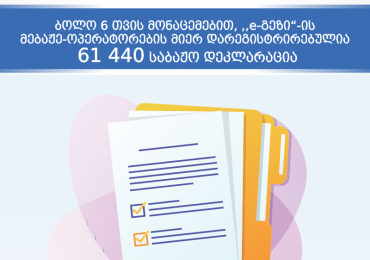 ბოლო 6 თვის მონაცემებით, „e-გეზის“ მებაჟე-ოპერატორების მიერ 61 440 საბაჟო დეკლარაციაა დარეგისტრირებული