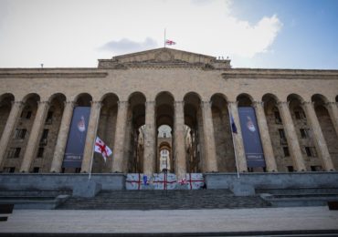 პარლამენტის სასახლეზე საქართველოს კათოლიკოს-პატრიარქის ილია მეორის ფოტოები განთავსდა (ვიდეო)