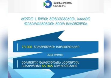 “ბოლო 1 წლის მონაცემებით, საბაჟო დეპარტამენტის მიერ გაცემულია 73 001 წარმოშობის სერტიფიკატი”
