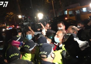 საბურთალოს საოლქო საარჩევნო კომისიასთან აქციაზე ალეკო ელისაშვილსა და სამართალდამცველებს შორის დაპირისპირებაა