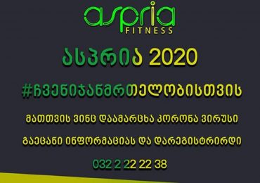 ქვეყანაში არსებული რთული ეპიდსიტუაციიდან გამომდინარე, ფიტნესქსელი „ასპრია“, სოციალური პასუხისმგებლობის ფარგლებში, ფიტნესსარეაბილიტაციო კამპანიას – „ასპრია 2020 ჩვენი ჯანმრთელობისთვის“ – იწყებს. კამპან…