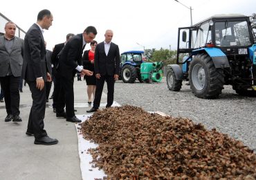 გიორგი გახარია და ლევან დავითაშვილი “ერთიანი აგროპროექტის“ მხარდაჭერით შექმნილ თხილის საშრობ-სასაწყობო საწარმოში იმყოფებოდნენ