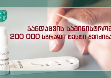 ჯანდაცვის სამინისტრომ 200 000 სწრაფი ტესტი შეიძინა