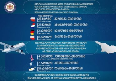 საქართველოს საგარეო საქმეთა სამინისტროს ინფორმაციით, ევროპის მიმართულებით დადგენილ ფრენებს 3 აპრილს თბილისი-ბერლინი-თბილისის მიმართულება დაემატა. „როგორც ცნობილია პრემიერ-მინისტრთან არსებულ საკოორდინა…
