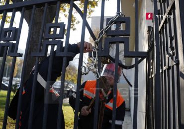 აქციის მონაწილეებმა ორთაჭალაში მდებარე შსს-ს ჭიშკარს ბოქლომი დაადეს