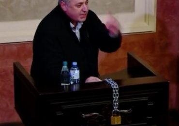 ხმაური საკრებულოს სხდომაზე – გოკა გაბაშვილმა ტრიბუნას ბოქლომი დაადო, ლევან ხაბეიშვილს კი, სკამზე ცოცხი დაუდეს