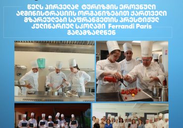 წელს პირველად ტურიზმის ეროვნული ადმინისტრაციის ორგანიზებით ქართველი მზარეულები საფრანგეთის პრესტიჟულ კულინარიულ სკოლაში Ferrandi Paris გადამზადდნენ