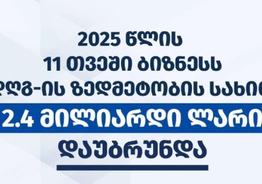 ფინანსთა სამინისტროს ინფორმაციით, 2025 წლის 11 თვის მონაცემებით, დღგ-ის გადამხდელებს, დღგ-ის ზედმეტობის სახით, ავტომატურად, 2.4 მლრდ ლარი დაუბრუნდათ. ცნობისთვის, დღგ-ის გადამხდელებისათვის დღგ-ის ზედმე…