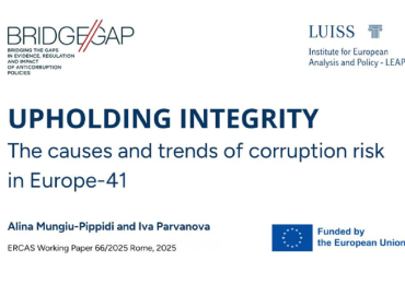ევროპის ანტიკორუფციული კვლევების ცენტრმა (ევროპის ანტიკორუფციული და სახელმწიფო აღმშენებლობის კვლევის ცენტრი) ევროპის ქვეყნებში კორუფციის რისკის მიზეზების და ტენდენციების შესახებ ვრცელი ანგარიში გამოაქ…