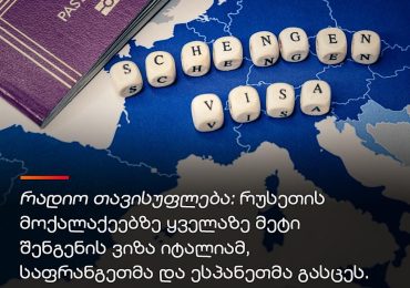 რადიო თავისუფლება: რუსეთის მოქალაქეებზე ყველაზე მეტი შენგენის ვიზა იტალიამ, საფრანგეთმა და შენგენმა გასცეს