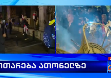 აქციის მონაწილეებმა ათონელზე კაფეების ინვენტარს ცეცხლი წაუკიდეს (ვიდეო)