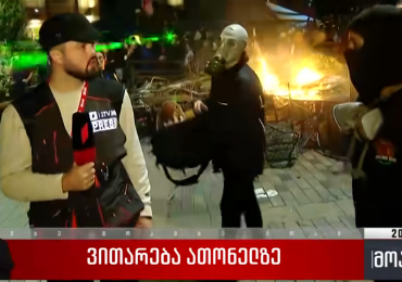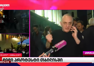 აქციის მონაწილემ საზოგადოებრივი მაუწყებლის გადამღებ ჯგუფს გაურკვეველი სახის სითხე შეასხა (ვიდეო)